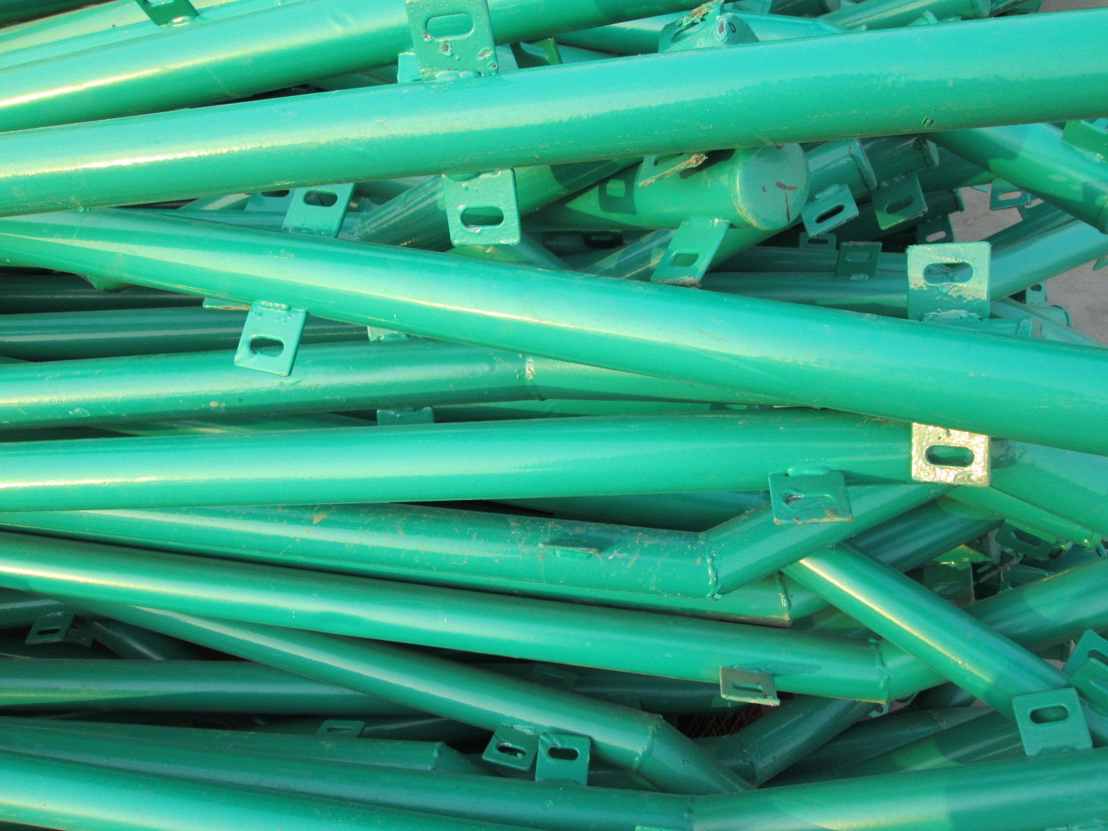 框架隔離柵也叫做框架防護(hù)柵欄,浸塑護(hù)欄網(wǎng),浸塑圍欄,浸塑鐵絲網(wǎng),浸塑防護(hù)網(wǎng)等:浸塑隔離柵是經(jīng)高科技防腐處理工藝浸塑處理后的圍欄,在鋼絲表面浸涂一層附著力極強(qiáng)的熱性工程塑料保護(hù)層,使鋼絲完全與空氣、水分及酸堿物質(zhì)隔離,達(dá)到耐磨、抗紫外線強(qiáng),防腐、防銹、防褪色的效果。其外觀飽滿亮澤,色彩多樣,使用壽命長,不需上漆維護(hù)、易清潔的,且兼有傳統(tǒng)鐵藝護(hù)欄網(wǎng)的古樸、美觀、牢固、品種多樣的優(yōu)點(diǎn)。 道路框架護(hù)欄網(wǎng)熱塑性粉末涂料具有遇熱軟化,冷卻后又能固化成膜的特性,主要是物理性熔融塑化成膜過程。浸塑工藝中絕大部分采用熱塑性塑粉,典型的有聚乙烯、聚氯乙烯、聚四氯乙烯,適用做無毒涂層,為一般裝飾、防腐、耐磨涂層。總而言之,噴塑產(chǎn)品多用于室內(nèi),浸塑產(chǎn)品多用于室外,浸塑比噴塑成本高. 道路框架護(hù)欄網(wǎng)產(chǎn)品常見規(guī)格: 1.材質(zhì):Q195低碳冷拔鋼絲 2.浸塑絲經(jīng):4.5--5mm 3.網(wǎng)孔:75mmX150mm(長方孔) 4.防腐處理:浸塑、電鍍鋅/熱鍍鋅、噴塑、噴漆 5.*尺寸:2.4mX3m