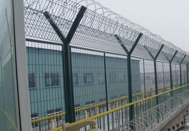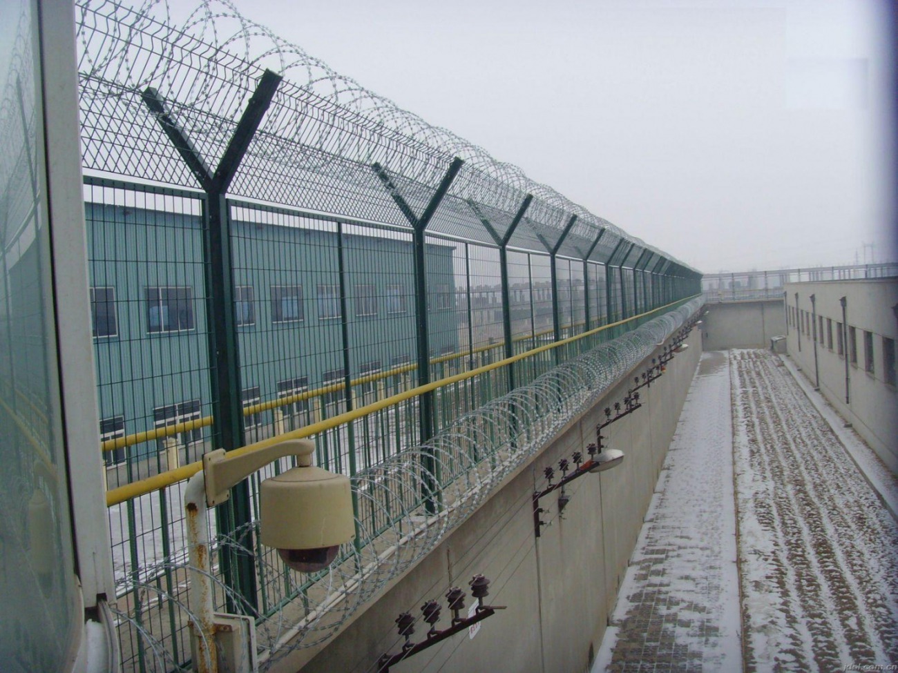 監(jiān)獄護(hù)欄網(wǎng)又稱(chēng)作“Y型安全防御護(hù)網(wǎng)”,是由V型支架立柱,加強(qiáng)型焊接片網(wǎng),安全防盜連接件和熱鍍鋅刀片刺籠組成強(qiáng)度和安全防御性級(jí)別很高。近年來(lái),被廣泛應(yīng)用在監(jiān)獄,軍事基地等高安全場(chǎng)所。(注:如果在監(jiān)獄護(hù)欄網(wǎng)頂部加裝刀片刺絲、刀片刺繩后又很好的增強(qiáng)了安全防護(hù)性能)。