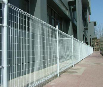 雙圈護欄網(wǎng)是用冷拔低碳鋼絲焊接成網(wǎng)筒狀卷邊與網(wǎng)面一體,采用鍍鋅進行防腐處理,具有很強的耐腐蝕性,然后進行噴、浸塑,各種顏色的噴、浸塑;然后連接附件與鋼管支柱固定。經(jīng)過幾年的風霜雨雪,太陽的暴曬,還是光亮如新,抗紫外線能力極強。綠色的草坪在白色金屬網(wǎng)的襯托下,顯得清新整潔。